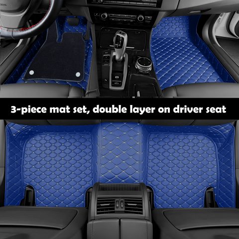 Custom Personalized Blue Car Floor Mats Leather Liners