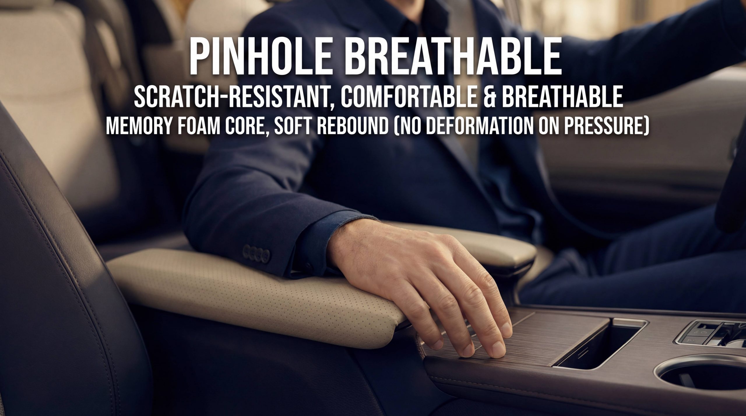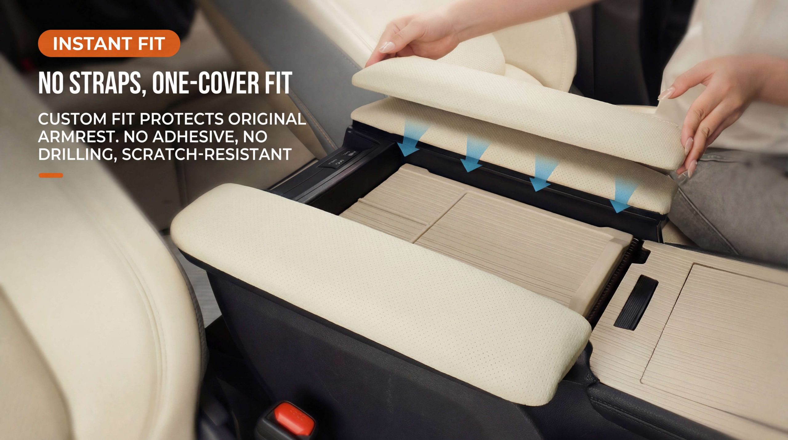 Custom-fit armrest cover for Toyota Sienna. No straps, no adhesive, no drilling. Premium perforated leather for comfort, breathability, and scratch-resistant protection.